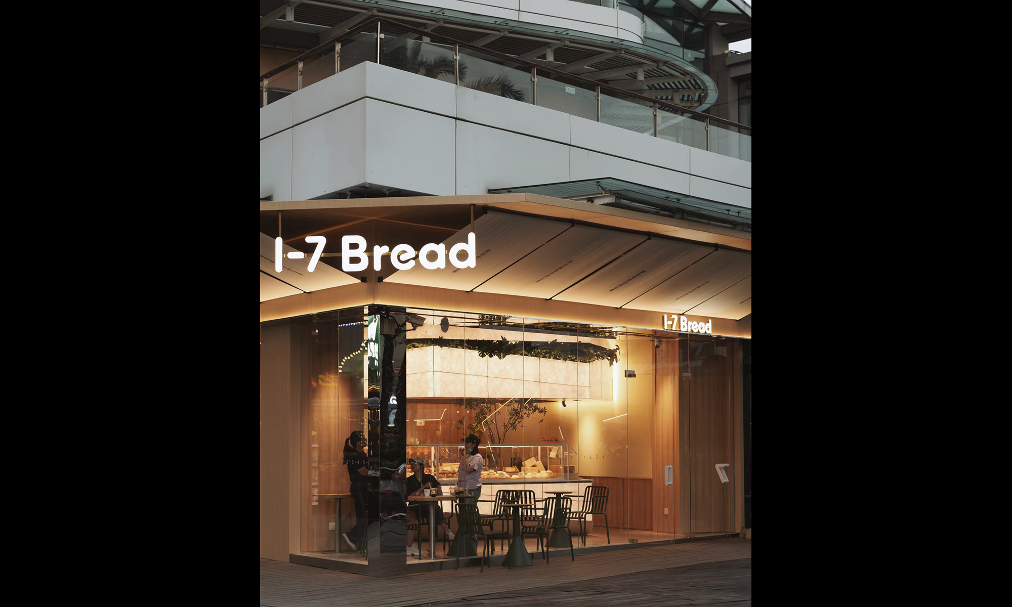 1-7 Bread is a bakery specializing in Japanese-style bread. Our design director Ryuta Okui has overseen the design of approximately 10 stores, primarily in Shenzhen, since the brand's establishment in 2018. While each store is designed based on a unique concept, the use of consistent materials and dimensions across locations creates a cohesive brand identity. For this project, inspiration was drawn from Isamu Noguchi's Akari lighting series. A huge lantern-like display fixture was placed at the center of the space, with the overall design revolving around it. This arrangement evokes the imagery of people gathering around a single light, creating a scene where families and friends come together to choose bread.